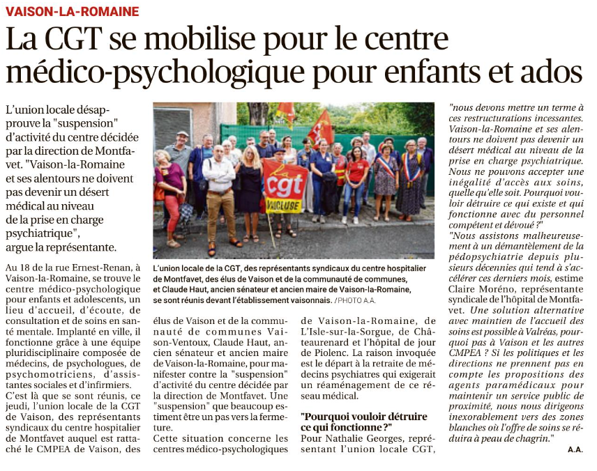 Union Locale Cgt Vaison et Fermeture CMPEA |